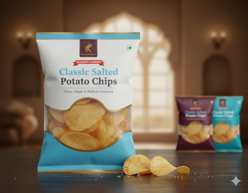 Classic Salted Potato Chips are the ultimate go-to snack, made from premium potatoes sliced thin and fried to golden perfection. Lightly sprinkled with salt, these chips offer a clean, timeless flavour and a satisfying crunch that appeals to all age groups.